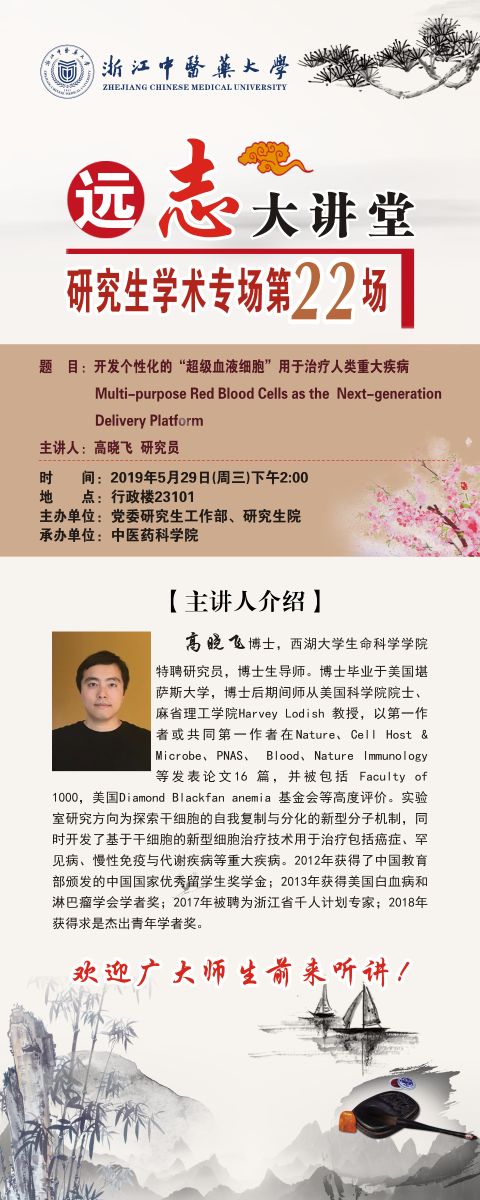 远志大讲堂预告:开发个性化的“超级血液细胞”用于治疗人类重大疾病